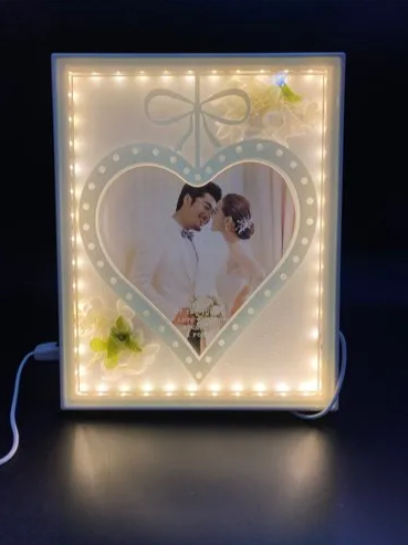 The frame is available in all standard sizes, making it perfect for family portraits, wedding memories, couple photos, certificates, or special moments. The warm white lighting creates a cozy and sophisticated look, ideal for living rooms, bedrooms, offices, or gifting purposes.