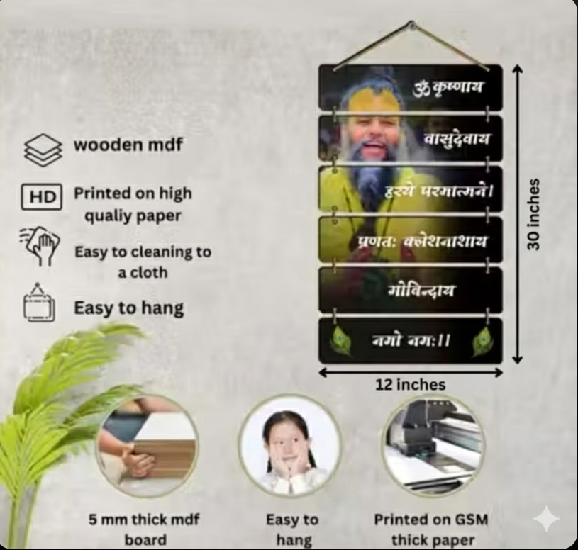 Enhance the spiritual ambiance of your home with this Premium Premanand Ji Maharaj Wall Hanging. Perfect for your living room or bedroom, this beautifully crafted digital reprint painting features the serene and divine presence of Premanand Ji Maharaj. The artwork captures the essence of spirituality, creating a peaceful environment in any room. Ideal for those seeking a blend of spirituality and artistic beauty, this wall hanging comes without a frame, offering flexibility in customization to suit your style. A perfect addition to your home decor, this piece of spiritual artwork adds a touch of grace and positivity to your space.